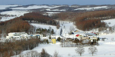国道274号線沿いに茂雪裡市街を見渡す絶景スポットがある。写真左手に最近ひそかなブームを呼んでいる茂雪裡小学校が見える。現在の児童数5人で,この3月で廃校になることが決まっている。