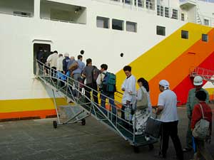 | ラナルド・マクドナルド上陸記念碑。1848年,アメリカの捕鯨船プリスマ号乗組員だったマクドナルドは日本入国を目的として降船し,ひとり小船で野塚に漂着した。本泊の運上屋で1ヶ月間の取調べを受けたあと長崎に送られ,そこで日本人に初めて英語を教えた。これによって英会話に習熟した者たちが列強との交渉に貢献し,日本を滅亡の危機から救ったのである。 | 土現が設置したモニュメント。記念写真を撮るには良い。 |