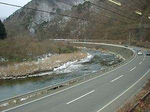 峠を越えると国道と離れて林道沿いを行く。