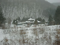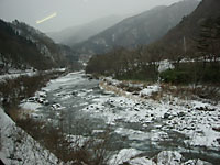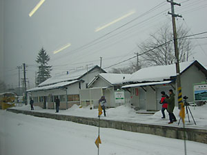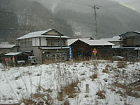 | 浅岸付近。廃屋だらけの無人境にある秘境駅と称されている。確かに都会の人の目にはそう映るかもしれないが,わたしの目で見れば立派な集落だ。林道も除雪されており,ガードレールも整備されていて立派なものだ。北海道ではとうに廃村となっているようなところに,岩手県ではまだ人が住んでいる。まさしく日本のチベットというのにふさわしい。しかし今の時代,このようなところに住み続けるのは大変なこと。いつまでこのような風景が見られるだろうか。 | ||