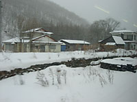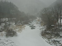 区界峠に向かってひたすら閉伊川(へいがわ)に沿って走る。宮古はほとんど雪が降らないが,峠に向かって雪がだんだん深くなっていく。