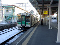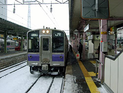 福島にもまだ少し雪があった。盛岡以来のオールロングシート701系電車とは別れて,今度は国鉄型の電車だ。やっぱり落ち着く。