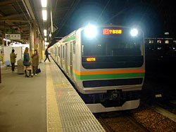 いよいよ上野行きだ。花のお江戸はもうすぐ近い。宇都宮からは疲れたサラリーマンがどっと乗ってくるというイメージがあるが,今日は日曜日のため空いている。いかにも速そうな電車だが,寒かった。上野到着時にはがら空きになったいた。