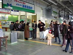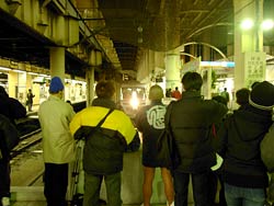 しかし,やはり鉄道マニアが多い。見た感じそれとわかる純粋な鉄道マニアが50%くらい,隠れ鉄道マニアを含めればほぼ100%が鉄道マニアといっても良いだろう。やはり元旦の夜中から列車に乗って初日の出を見に行こうとするということは,皆多かれ少なかれ鉄道が好きなのである。