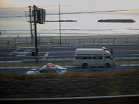 6時46分,大津港−勿来(なこそ)間の勿来の関付近で停車。「ここでしばらく初日の出をお楽しみください」と車内放送があった。「えっ,ここかい」と思った。目の前に太い電線が何本も走っているのだ。