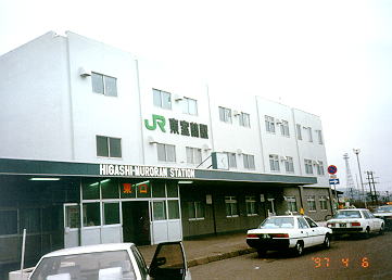 東室蘭というと室蘭市のはずれにあるような印象を受けるが,現在では駅周辺が室蘭の中心市街地になっている。駅名は当初「室蘭駅」として開業,明治30年に現在の室蘭駅ができたため輪西に改称,さらに昭和3年には東輪西と改称,昭和5年に東室蘭に落ち着いた。たしかに本家の屋号が次々に他の駅に奪われていったという感じがするが,昭和30年代以降,土地区画整理事業により周辺が市街化した。東口からまっすぐ700mのところには胆振の名門校・室蘭栄高校がある。