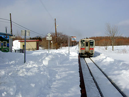 原野の中の貨車駅で,駅前は小集落。こんな駅でも釧網線開通当初からの古い駅で,昔は木材や木炭の搬出で賑わったことだろう。徒歩5分のところに,とほ宿「ましゅまろ」がある。