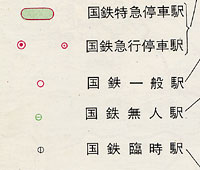国鉄では貨物と旅客(または荷物)を扱う駅を一般駅といったはずだが,この地図の場合,特急・急行停車駅,無人駅,臨時駅以外のすべての駅を一般駅と称している。