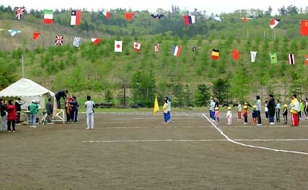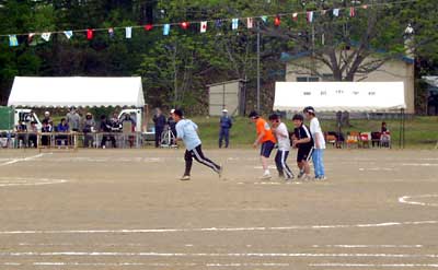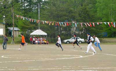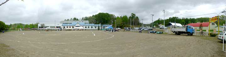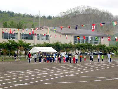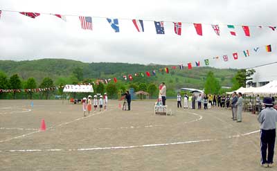 9時40分,鶴居村幌呂中学校到着。幌呂は独自の農協を持っているほどの大きな集落で,町の学校の運動会という感じだ。グランドも広々としている。会場は中学校だが,小中の合同開催となっている。