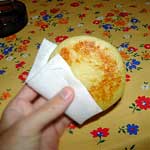 | S'氏のうに丼,1000円。 | 私はいももち,100円。 | ほっけスティックは3本で100円。 |