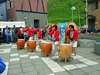 礼文太鼓。写真はアツモリ太鼓を披露しているところ。