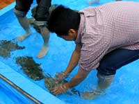 S'氏も飛び入りで参加。見事にカレイを捕らえたが,この後,捕まえたカレイの始末に悩むことに。