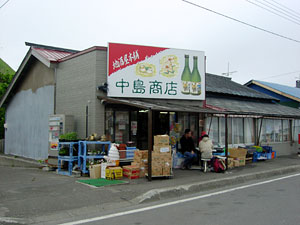 香深の中島商店。浜中の中島商店とは別物で,フェリーターミナル前の中島商店の系列のようである。ここで弁当を買おうと思ったのだが売っていなかった。去年は売っていたのに,やはりセイコーマートの影響だろうか,気がかりだ。