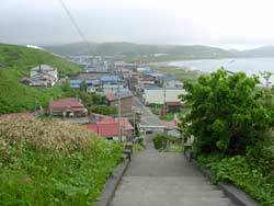 ![]() 境内からは船泊市街を一望にできた。礼文は神社が多いが,禮文神社は旧船泊村の村社,厳島神社が旧香深村の村社にあたるのだろう。 |