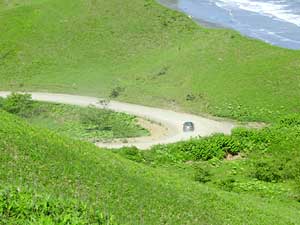 西側から国道の延伸工事が進められている。現在ダート区間は5km残っているが,今後も年に1〜2kmペースでダートが短くなっていくだろう。国道ができれば海側の景色の良いダートは通行できなくなると思われる。ダートとて2〜3車線幅があり,通行にはまったく支障がないのだから何もこんなところまで工事しなくても良いのにと思う。