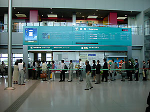 9月11日にアメリカで発生したテロの影響で,空港でのチェックもかなり厳しくなっていた。しかし検査員も慣れていないのか,ただぼーっと立っているだけで何も言わないのでそのままチェックインしたところ,「荷物の検査は受けましたか」と問われ,正直に「いいえ」と答えると,もう一度並び直して検査を受けてから来るように言われた。ちょっと頭に来る対応だった。