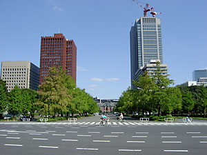 東京駅の正面をまっすぐ進むと皇居に当たる。