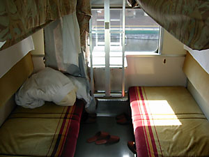 立席とはいっても,寝台の空いている場所に座ることができる。立席の乗客のために秋田で車内清掃が入って,きれいな状態で来るのかと思ったが,そうではなく,寝台の客も立席の客もごちゃごちゃになって乗るのだった。起きてそのままのシーツがぐちゃぐちゃなところに座らせてもらうのである。