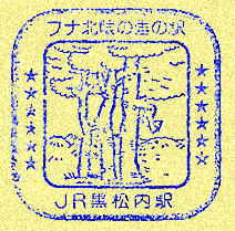 | 黒松内駅下車。この駅はJR北海道の直営駅なのかどうかわかりませんが,ユニークです。駅員さんは大正時代風の制服を着ていますが,これは駅員さんの趣味でしょうか。マルスはなく,小樽行の切符も出札補充券というのでしょうか,わざわざ手書きで出していました。聞くところによれば青春18きっぷの常備券もあるとか。窓口には「当駅には2種類のスタンプがあります」という張り紙があり,頼んで押させてもらいました。左は昭和47年刻印の年代物です。 | |
