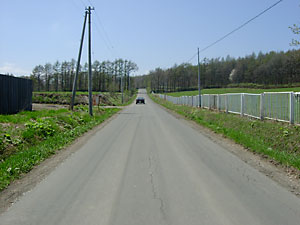 森林公園南端を走るこの道はいちおう舗装されているがセンターラインはない。札幌と南幌,北広島方面を結ぶ裏道として交通量は多い。