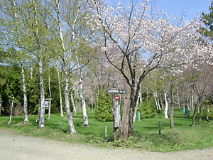 桜も良い感じ。行楽日和なので交通量が多いが,平日は通勤の車も多いという。札幌まで砂利道で通勤するというのもすごい話だ。