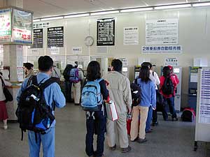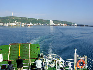 稚内フェリーターミナルにて香深(かふか)行きの切符を買う。利礼航路は予約もいらず,バスなどと同じ感覚で乗ることができる。ターミナル内では小さな子供が声を張り上げて弁当を売っていたのがかわいかった。乗船名簿に記入して乗り場へ向かう。