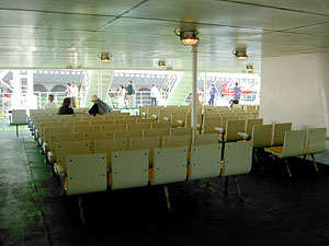 香深ゆき始発便。2等船室は既に混み合っていたので,外の椅子席に座ることにした。空気はひんやりしているが,今日は天気も良いので,じきに暖かくなるだろう。