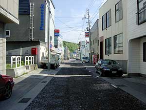 香深市街のメインストリート,すなわち,礼文島のメインストリート。こちらは期待どおり,狭い路地に商店がひしめいており,いかにも離島らしい。