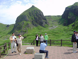 | 桃岩。高さは250メートルもある。 | 猫岩。猫が背中を向けている感じ? |