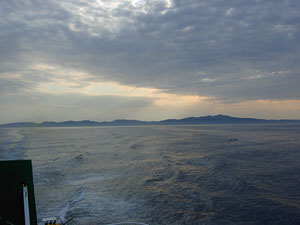 船の旅立ちは汽車やバスと違って独特のものがある。陸がどんどん遠ざかっていく様子に,もうどうにもならない惜別感がこみ上げてくる。