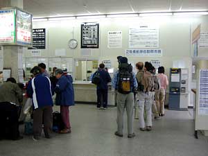 フェリーから降りた人の多くはターミナルに入る間もなく観光バスへ乗り込む。