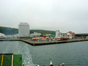 フェリーの客層は礼文のときと対照的だった。礼文の場合は若い人も年配の人もアウトドアスタイルで,いかにも旅人という感じの人が多かった。対して今日はいかにも物見遊山という感じの人が多い。今の時期だと旅の人は学生と年寄りに2極分化しており,家族連れは皆無だが,今日は年寄りが圧倒的に多い。礼文のときはユースホステル系の若い人がけっこういた。