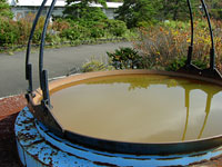 何を煮たのか大きな鍋。あるいはプールを利用する人が暖を取るための温浴槽だったかもしれない。