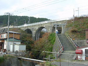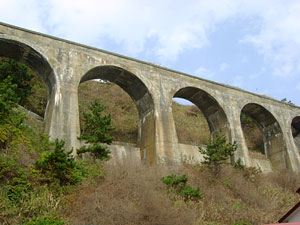 汐首岬のすぐ近くにある有名なコンクリートアーチ橋。鋼材不足のため,無筋であるといわれている。