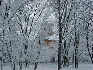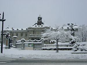 元の済生館病院本館・山形市郷土館は雪に覆われ,近づくことすらできなかった。