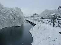 | 二の丸東大手門 | 奥羽本線沿いの堀 | 最上義光像 |
