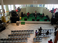 今晩はアトリウムで年越しのイベントが催されるらしい。