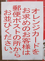 オレンジカードは明日発売とのこと。惜しい。「オレンジカードをお求めのお客様は郵便ポストの所からお並びください。」とは用意がいい。