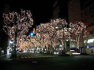 青葉通りではこのあたりがいちばん華やかだった。電球の数の割りに見栄えがしないのは,雪がないためだろう。