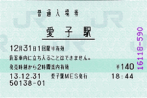 入場券は自販機でも買えるのだが,これは感熱紙のため保存ができない。窓口で「すいません,入場券を出してくれませんか」と申し訳なさそうにお願いして出してもらった。