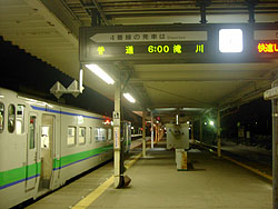 5時50分,1番線に札幌からの特急まりもが到着。2番線は根室行き,3番線は網走行き,4番線では滝川行きの普通列車がそれぞれ乗り換えの客を待ち受ける。
