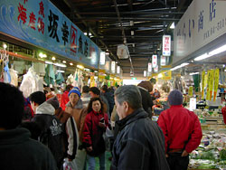 駅前をまっすぐ,しばらく歩くと魚菜市場があった。