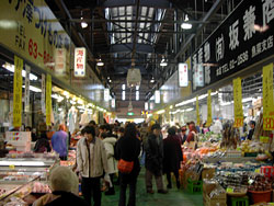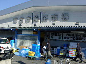 新しくきれいな市場だった。市場特有の喧噪もなく,なごやかムードで,落ち着いて買物ができる雰囲気だ。店員さんも荒々しい浜言葉ではなく,ほんわかした言葉で話しかけてくる。これはこの地方の言葉の特徴で,京言葉に似ているといわれている。