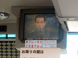 バスに乗り込み発車を待っていると,なにやら聴いたことのあるメロディーが流れてきた。思わず,ハッと見上げると,三波春夫さんが歌っていた。私は,「三波春夫大全集」を持っているほどの三波さんの大ファンである。