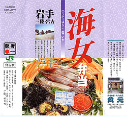 宮古駅の駅弁は魚元という料亭が作っている。弁当自体,うに,はらこ,蟹,いかなど海産物がギュっと詰め込まれており大変おいしいが,料亭が作っているということで,もう一つ付加価値のついたような高級感がある。