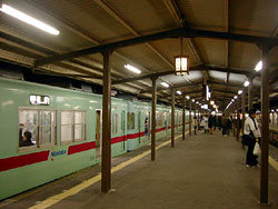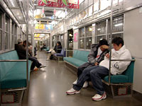 西小倉発車時点では空いていたが,スペースワールドからどっと乗ってきた。髪を染めたりピアスをしたモボ・モガたちが大勢を占めている。若者たちの年越しスポットは門司港ではなくスペースワールドだったのだ。