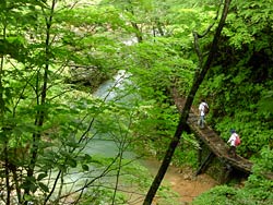 途中に鶴の湯峡という景勝があった。つり橋などもあって趣深い。