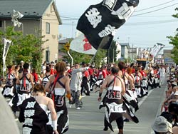 徳内ばやしというのは1994年に生まれた新しい踊りで,北海道・厚岸の厚岸ばやしの影響を受けているとのこと。北海道の文化が東北に逆輸入されたという珍しいケースである。東北では珍しい斬新な踊りということで若者の参加者が多く,年々盛り上がりを増し,参加団体はこの日のために一年中踊りの練習に励んでいるそうである。