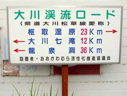 バス停の前にあった看板。これまで通ってきた道は「大川渓流ロード」という愛称がついているようだ。
