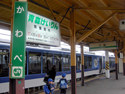 青森から奥羽本線の普通列車に乗り継ぐ。桜の時期だけあって,車内は行楽客で混雑していた。